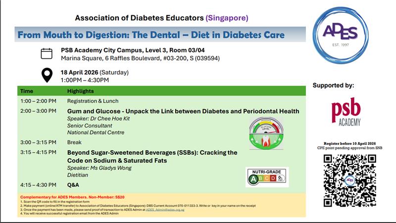 The Association of Diabetes Educators Singapore (ADES) is a non-profit organisation comprising of a team of trained diabetes nurse educators